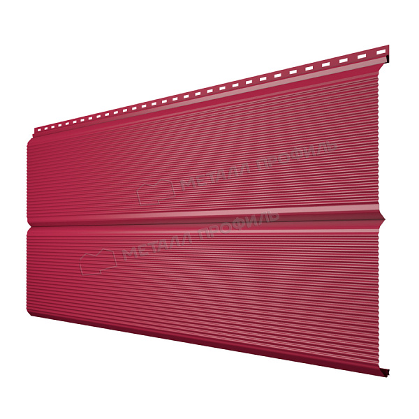 Сайдинг МЕТАЛЛ ПРОФИЛЬ Lбрус-XL-В-14х335 NormanMP (ПЭ-01-3005-0.5) — это оцинкованные стальные профилированные панели с декоративно-защитным покрытием NormanMP®. Данный облицовочный материал применяют для монтажа сайдинга. Металлический сайдинг по многим характеристикам практичнее натуральных материалов, так как не подвержен внешним воздействиям; сайдинг, облицованный lбрус xl, выглядит эстетично. Металлосайдинг — стильный и практичный материал для вашего сайдинга!Покрытие NormanMP®: